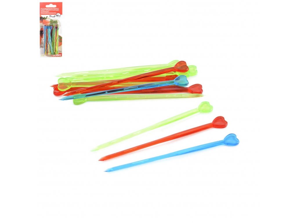 Plastové napichovadlá využijete pri podávaní jednohubiek, ovocia, zeleniny a podobne. Sú vyrobené z transparentného plastu a v balíku sú v rôznych farebných prevedeniach. Sada obsahuje 50 ks napichovadiel. Rozmery: dĺžka 8 cm.Dodatočné parametre