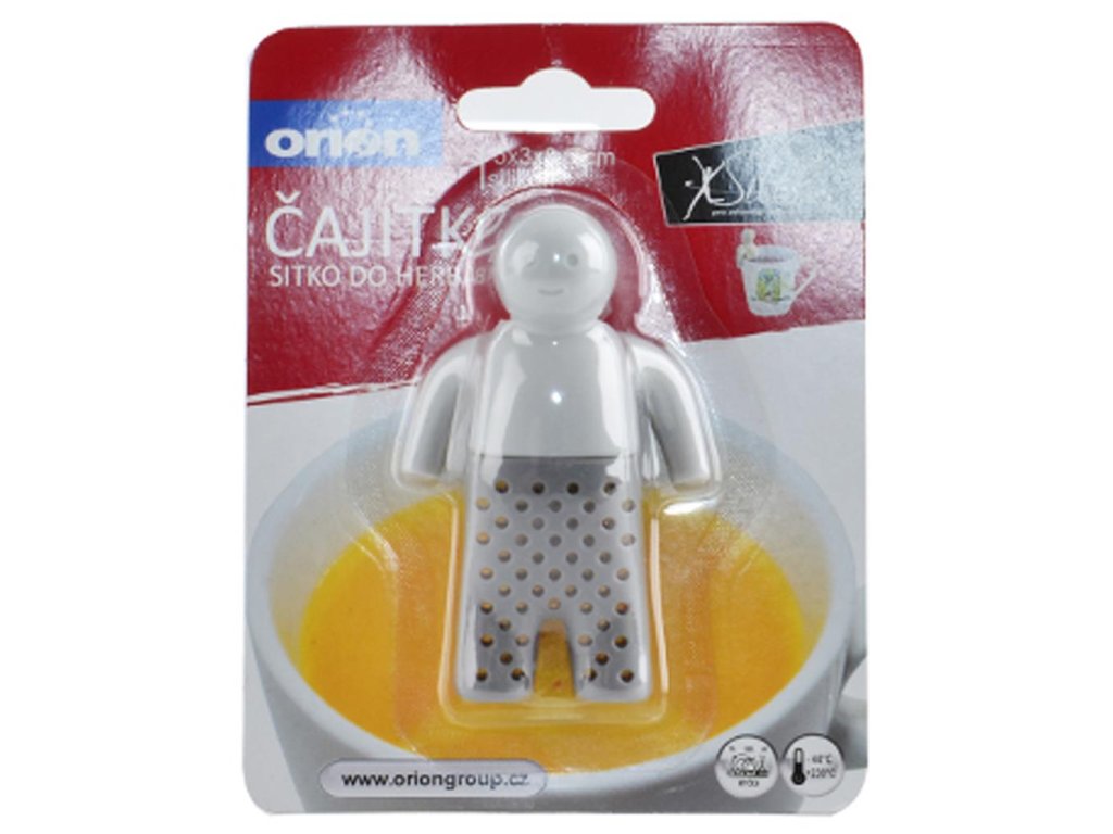 Silikónové čajítko v tvare panáčika prakticky využijete na vyluhovanie sypaného čaju, ale aj pri varení na rôzne druhy korenín. Po uvarení tak nemusíte koreniny vyťahovať pracne po jednom. Čajítko nepreberá chute ani pachy. Ľahko sa umýva pod tečúcou vodou. Materiál: silikón. Rozmery: 5x3x8,5 cm.Dodatočné parametre