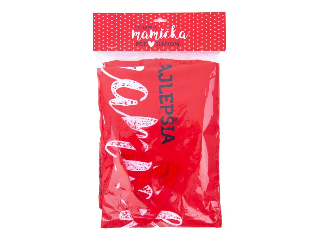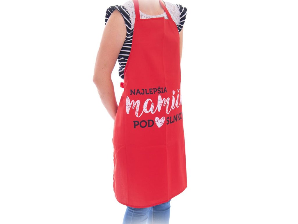 Zástera kuchynská s dekorom NAJLEPŠIA MAMIČKA je vyrobená z kvalitnej látky. Chráni Vaše oblečenie pri príprave jedla. Manipulácia s ňou je veľmi jednoduchá a jej praktickosť ocení určite každá gazdinka. Na zaväzovanie v páse. Dá sa prať v práčke. Materiál: 50 % balvna, 50 % polyester. Rozmery: šírka 70 cm, dľžka 82 cm.