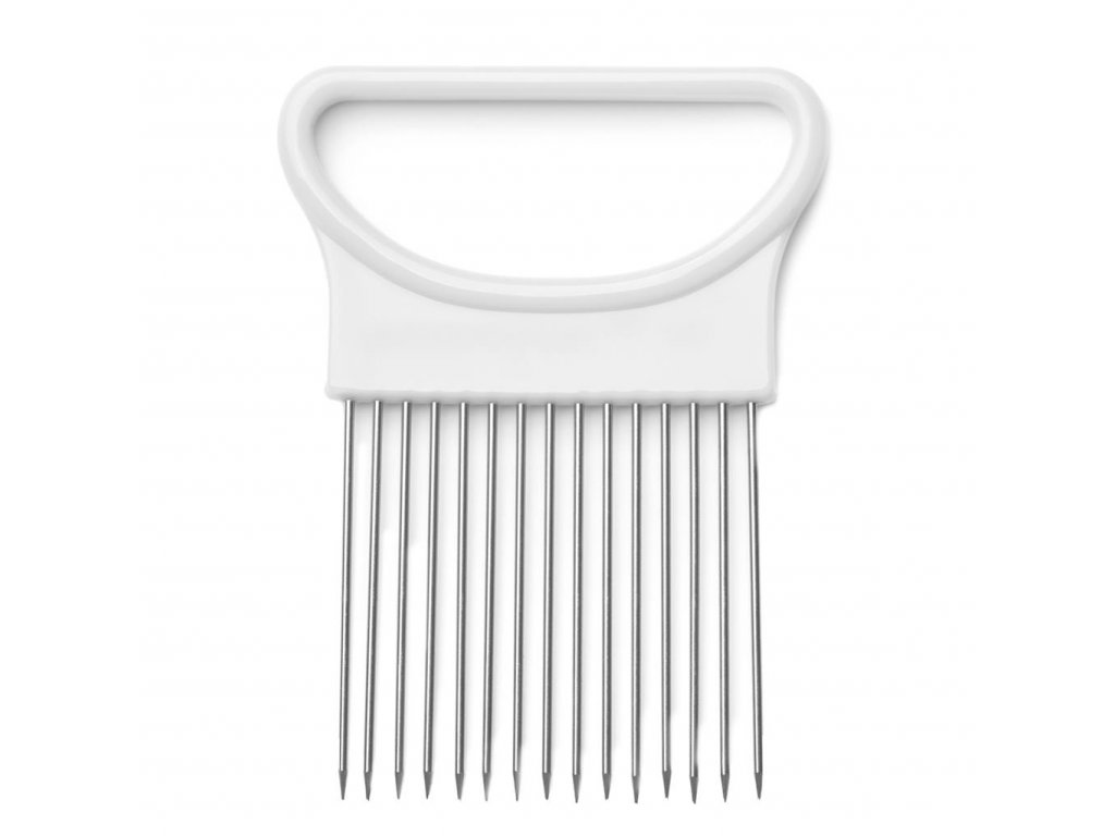 Krájač, ktorý vám pridrží cibuľu pri krájaní a pomôže nasekať ju na drobné kúsky. Cibuľa sa nešmýka a šikovne nakrájate i väčšie množstvá. Materiál: nerez, plast. Rozmery: šírka 6 cm, dĺžka ihiel 5,5 cm.Dodatočné parametre