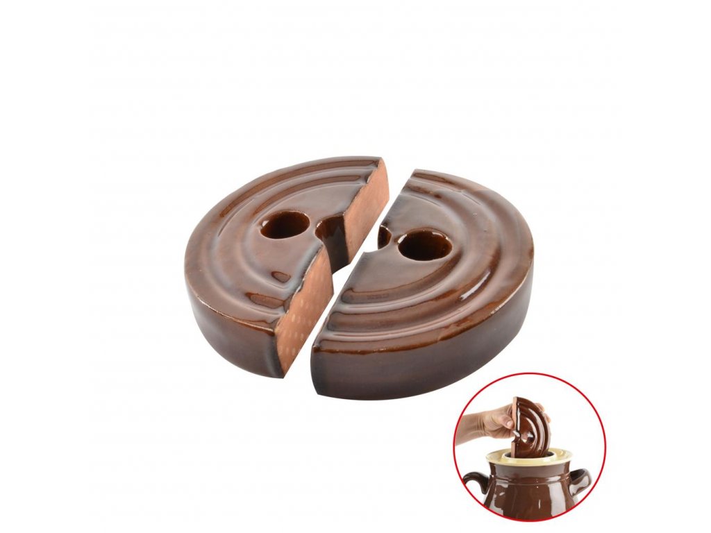 Keramické ťažítko do suda na kapustu, ktoré je rozdelené na dve časti. Vďaka tomu sa umožní jeho vloženie aj do nádob s menším priemerom hrdla. Malý, ale nesmierne šikovný pomocník pri kvasení kapusty, či inej zeleniny. Tažítko má otvory cez ktoré vyteká zo zeleniny šťava, využijete ich aj na ľahšie vyberanie z nádoby. Zeleninu stláčate do nádoby a keramickým ťažítkom zaťažíte tak, aby sa k zelenine nedostal vzduch. Následne presuňte nádobu na stabilné miesto s izbovou teplotou. Akonáhle zelenina pustí šťavu a začína byť cítiť, znamená, že prebieha mliečne kvasenie. Je dôležité, aby zelenina bola ponorená v šťave. Takto vydrží uskladnená aj niekoľko mesiacov. Oproti drevu zabráni plesniam a baktériám. Materiál: keramika. Rozmery: priemer 15 cm.Dodatočné parametre