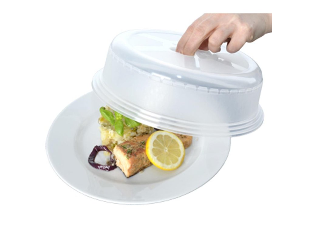 Okrúhly kryt z odolného plastu ochráni vašu mikrovlnnú rúru pred znečistením pri ohrievaní potravín. Zároveň bráni šíreniu nežiadúcich pachov. Vhodný do umývačky riadov. Materiál: plast. Odolný voči teplote od -30 °C do +90 °C. Transparentný. Rozmery: priemer 26 cm, výška 6,5 cm.Dodatočné parametre