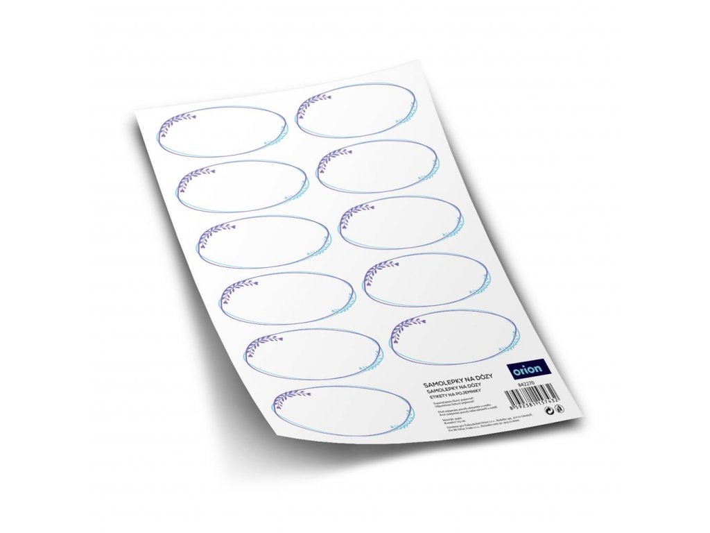 Univerzálne samolepky, všestranne využiteľné v každej domácnosti. Označia krabice s hračkami, sezónnym oblečením, náradím, drobnosťami. Veľmi pekne vyniknú i na obaloch školských učebníc alebo zošitov. V kuchyni ich určite využijete na dózach s potravinami. V komore sa hodia na kompóty a zaváraniny, džemy a detské výživy - jednoducho si na ne poznačte rok spracovania a zloženie obsahu. Tip: môžete ich využiť aj ako etikety na balíčky s darčekmi. Prázdne. Oválny tvar. Materiál: papier. Rozmery: 1 etiketa 7x3 cm.Dodatočné parametre