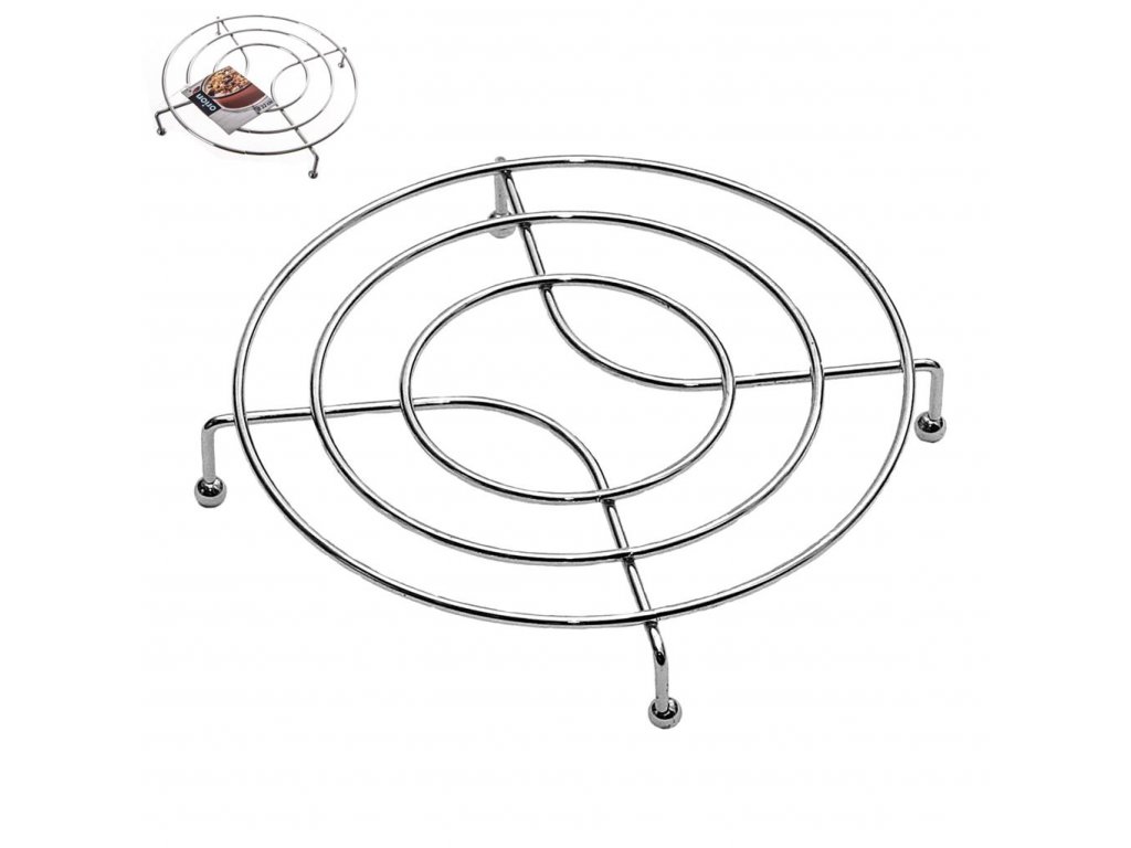 Podložka, ktorá má využitie najmä na odloženie horúceho riadu alebo plechu na pečenie, ktorý tak nepoškodí pracovnú dosku kuchynskej linky. Podložku môžete využiť aj pri servírovaní priamo na stole. Materiál: drôt s povrchovou úpravou. Rozmery: priemer 22 cm, výška 3, 5 cm.Dodatočné parametre