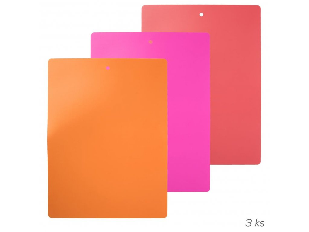 Plastová podložka na krájanie v troch farebných prevedeniach. Svojou jednoduchosťou a praktickosťou zaujmú každú gazdinku. Podložku ľahko ohnete, takže nakrájané potraviny len jednoducho prenesiete na učené miesto, alebo ju môžte použiť ako podklad k prípave cesta. Pre ľahšiu skladovateľnosť majú praktické očko na zavesenie. Rozmery: 38 x 28 cm, hrúbka 0,6 cm.Dodatočné parametre