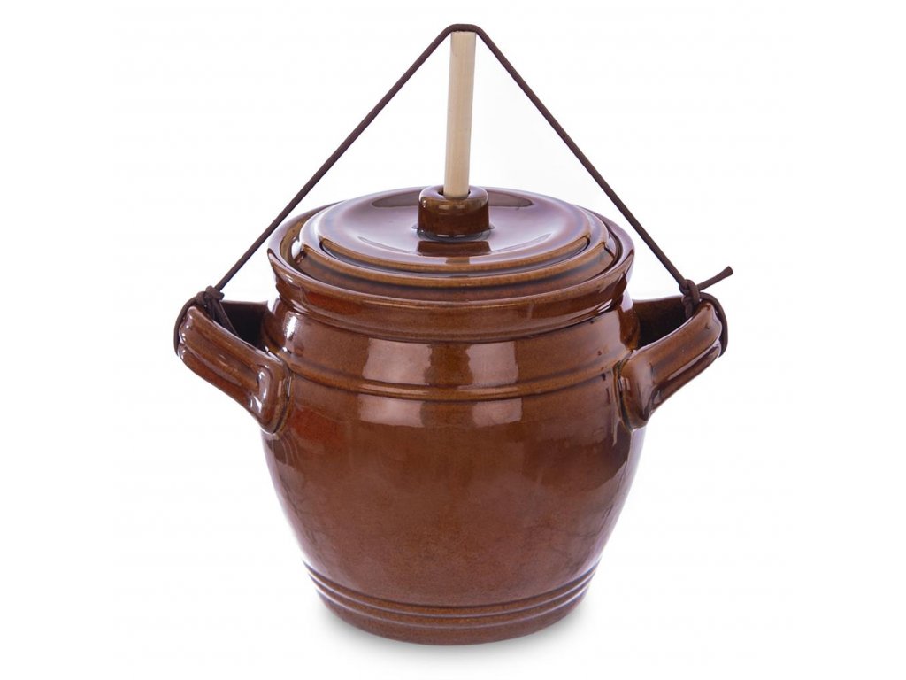 Keramický hrniec s keramickou pokrievkou na nakladanie zeleniny vám pomôže na zimu pripraviť Pickles - zelenina kvasená pomocou baktérií mliečneho kvasenia. Všeobecne povedané kvasená zelenina aktivuje imunitný systém v boji proti baktériám a vírusom, posiluje organizmus proti infekciám, podporuje tiež tvorbu krvi a hormónov. Doporučená denná dávka sú 2 polievkové lyžice kvasenej zmesi. Pickles je tak ideálny ako obloha k hlavnému jedlu alebo prísadou do šalátu. Vnútorná pokrievka je tlačená drievkom a gumičkou stále ku dnu a vyvíja tlak na zeleninu. Hrniec je vyrobený z keramiky,okolo hrdla je gumené tesnenie, a cez stred je drevená palička. Rozmery: objem 1,3 l, pr. 13,5 cm, v. 14/20 cm. Vhodný do umývačky riadu. Vnútri balenia recepty.Dodatočné parametre