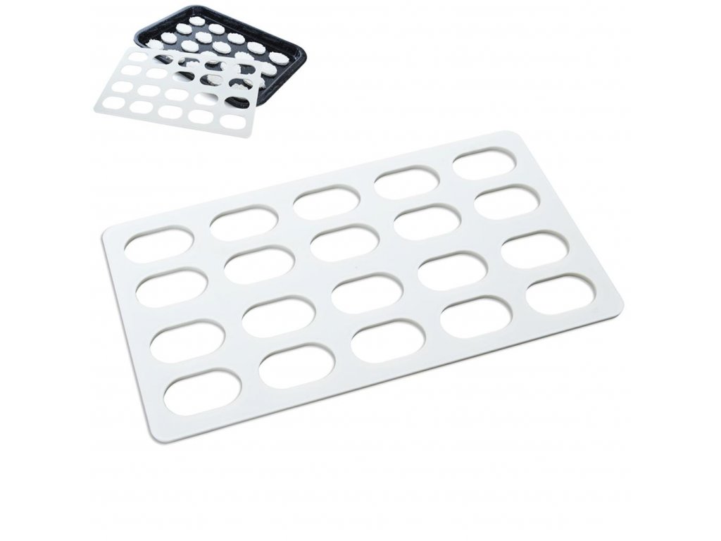 Laskonky alebo iné druhy koláčikov, si ľahko vytvotíte pomocou tejto šablóny, priamo na plechu. Pod šablónu si pred použitím položte papier na pečenie. Forma sa ľahko umýva pod tečúcou vodou a je možné ju umyť aj v umývačke riadu. Materiál: plast. Rozmery: 18x30x0,4cm, jedna laskonka 4,5x3 cm.Dodatočné parametre