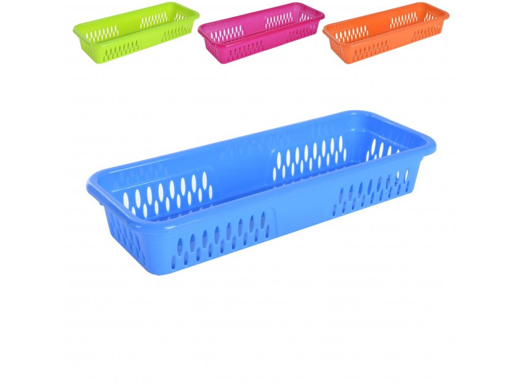 Plastový obdĺžnikový košík bez úchytiek využijete na usporiadanie drobností v kúpeľni, v kuchyni, v detskej izbe, v pracovni.... Je vyrobený z plastu, úchytky sú tiež plastové, je vyrobený vo viacerých farebných prevedeniach, je to assort farieb. Košík vám pošleme podľa dostupnosti farby na sklade.Dodatočné parametre