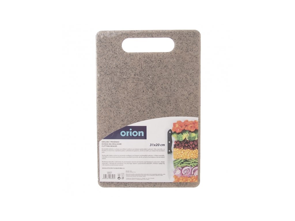 Doska na krájanie, plast, 31 x 20 cm s možnosťou zavesenia. Neprenáša pachy a predstavuje hygienické prostredie pre krájanie jedla. Krájanie na nej neznehodnocuje kvalitu noža. Materiál: plast. Rozmery: 31 x 20 x 0,7 cm.Dodatočné parametre