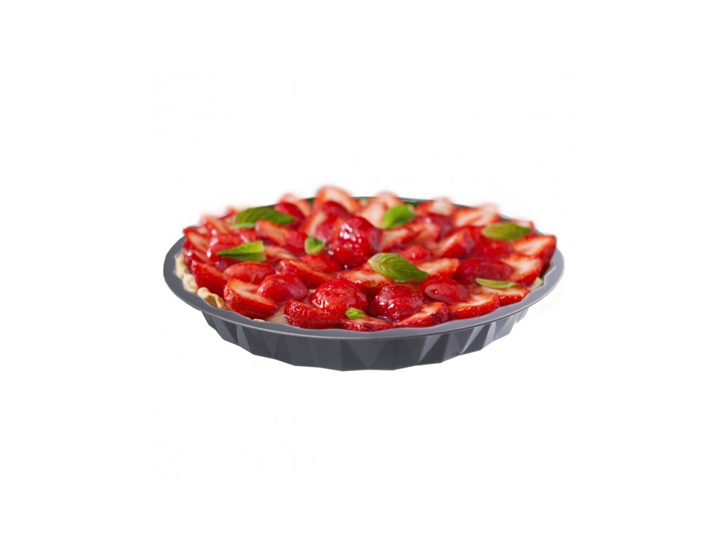 Forma kov/nepr. povrch, KOLÁČ, GREY, pr. 29,5 cm. Vhodná pre kreatívne pečenie, najmä na prípravu domáceho koláča. Nepriľnavý povrch zabezpečí zdravé pečenie bez potreby pridania veľkého množstva oleja. Vhodná do teploty max 200 °C. Možno umývať v umývačke riadu. Priemer: 29,5 cm, výška: 3,5 cm.Dodatočné parametre