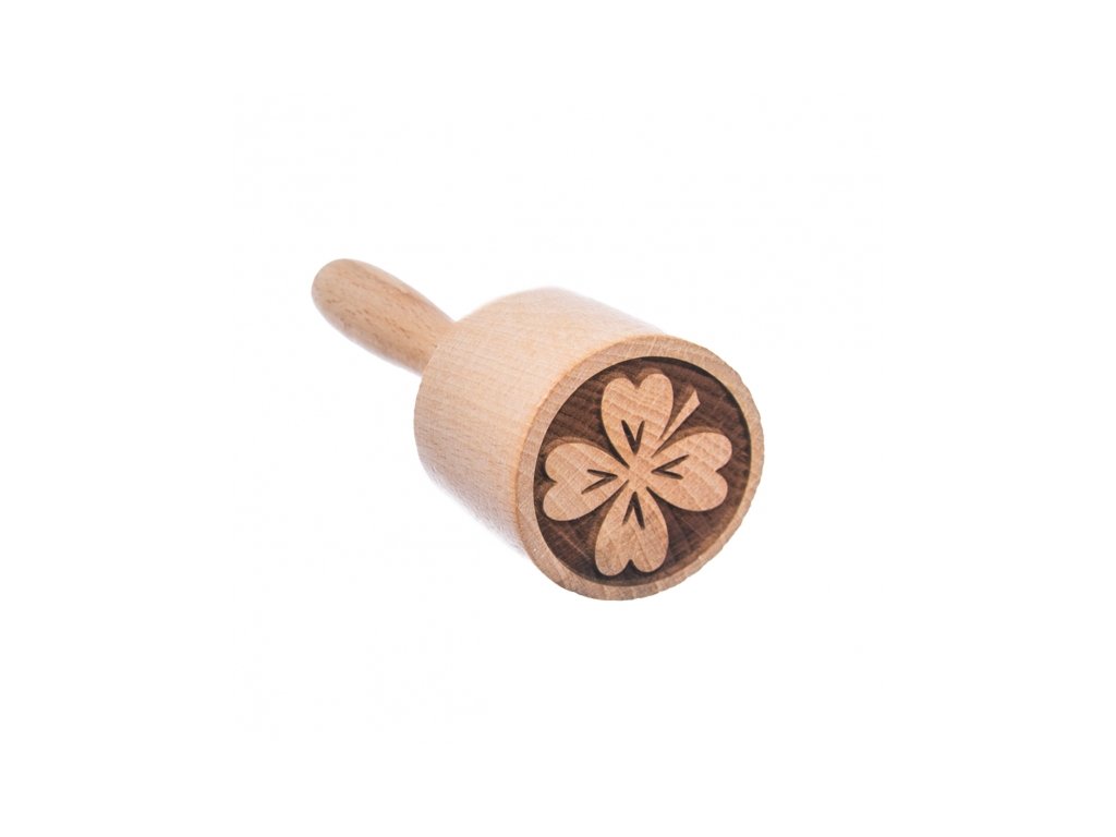 Pečiatka drevo, na cesto, ŠTVORLÍSTOK. Praktické pomôcky do kuchyne, ktoré sa Vám zídu pri pečení chutných sladkých alebo slaných dobrôt. Materiál: bukové drevo. Priemer: 4 cm.Dodatočné parametre