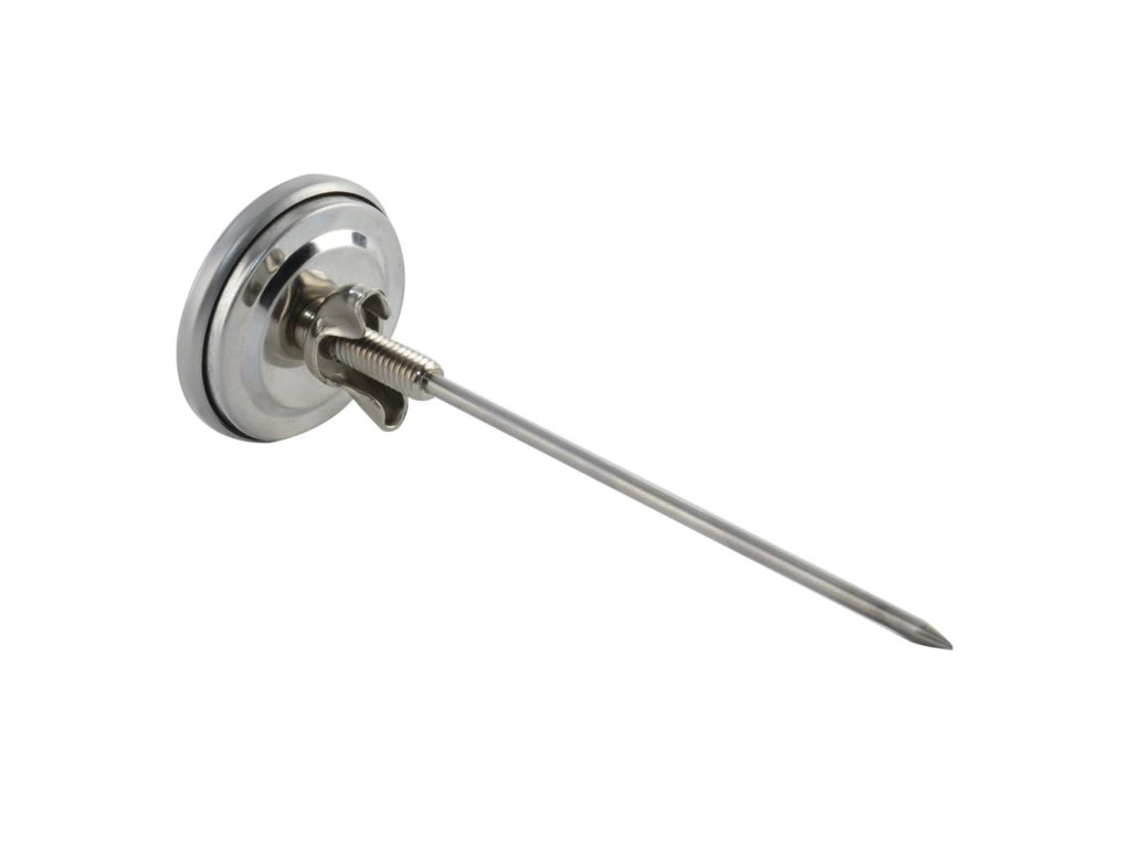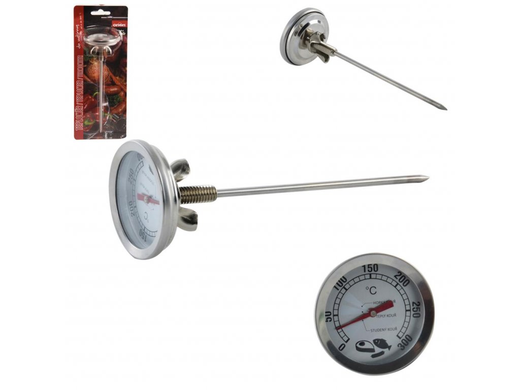 Neodmysliteľná pomôcka pre gurmánov pri príprave mäsa. Majte teplotu v udiarni pri príprave mäsa pod kontrolou. Pripevňuje sa na dvierka, po prevŕtaní otvoru na upevnenie teplomera priskrutkujte maticou. Dĺžka ihly až 16 cm zaručí, že teplomer nebude merať teplotu ovplyvnenú vonkajším vzduchom tesne pri dvierkach udiarne, ale reálnu teplotu v udiarni. Meria teplotu od 0 °C do 300 °C, stupnica po 10 °C. Materiál: nerez, sklo. Rozmery: priemer 5 cm, dĺžka 16 cm.Dodatočné parametre