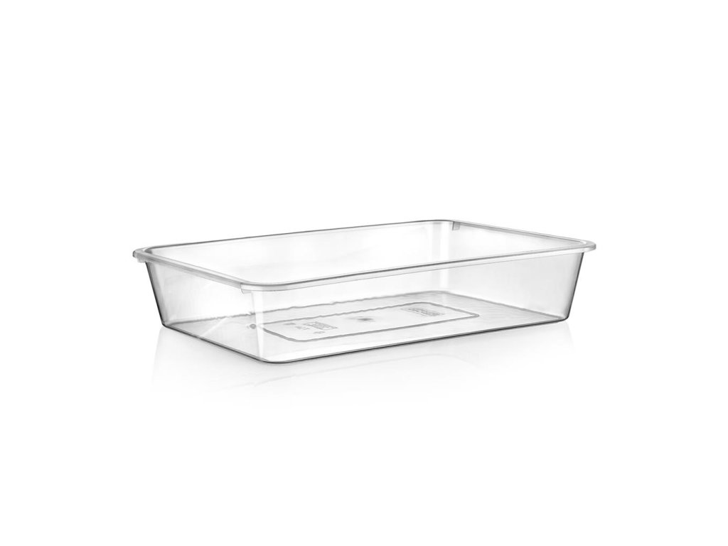 Číra obdĺžniková miska vhodná na servírovanie šalátov a mnohých ďalších studených pokrmov. Rozmer: obj.1,7l/25x17x5,5cm