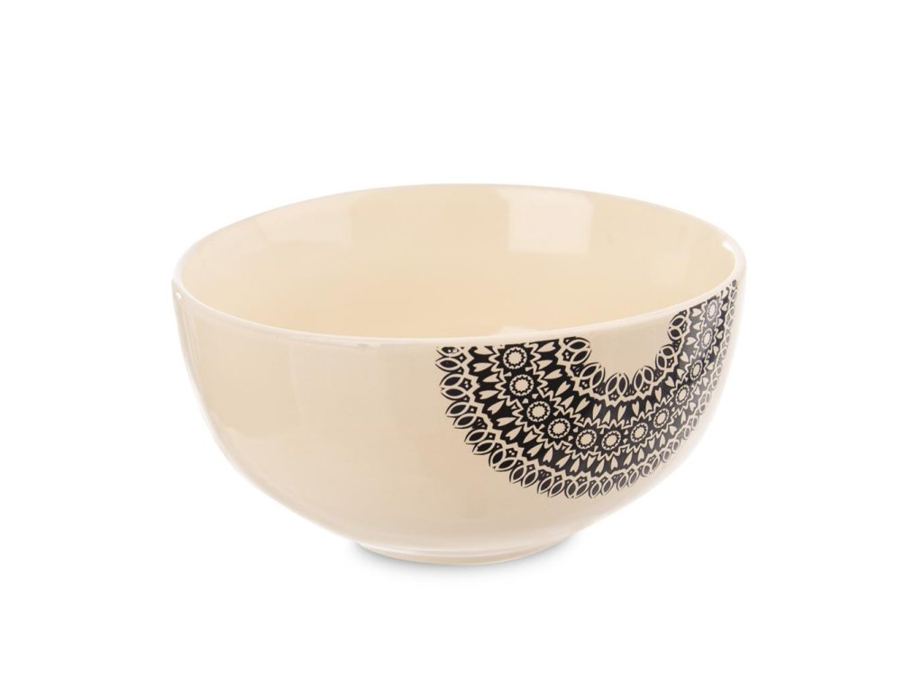 Keramická miska s dekórom mandaly využijete v každej domácnosti. Servírovať v nej môžete teplé polievky, ovocné či zeleninové šaláty a deti sa potešia tiež sladkým cereáliám či jogurtom. Je vhodná aj do umývačky riadu či mikrovlnnej rúry. Materiál: keramika. Rozmery: objem 0,51 l, priemer 13 cm, výška 6 cm.Dodatočné parametre