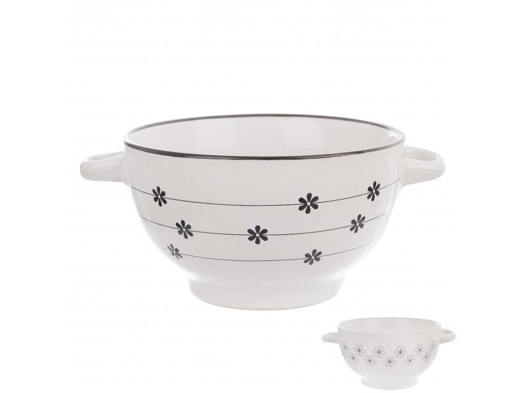 Keramická miska má využitie v každej domácnosti. Servírovať v nej môžete teplé polievky, ovocné či zeleninové šaláty a deti sa potešia tiež sladkým cereáliám či jogurtom. Vďaka dvom uškám na bokoch sa miska jednoducho prenáša. Vyrába sa v dvoch farebných dekóroch. Materiál: keramika. Rozmery: objem 0,75 l, priemer 14 cm, výška 8 cm.Dodatočné parametre