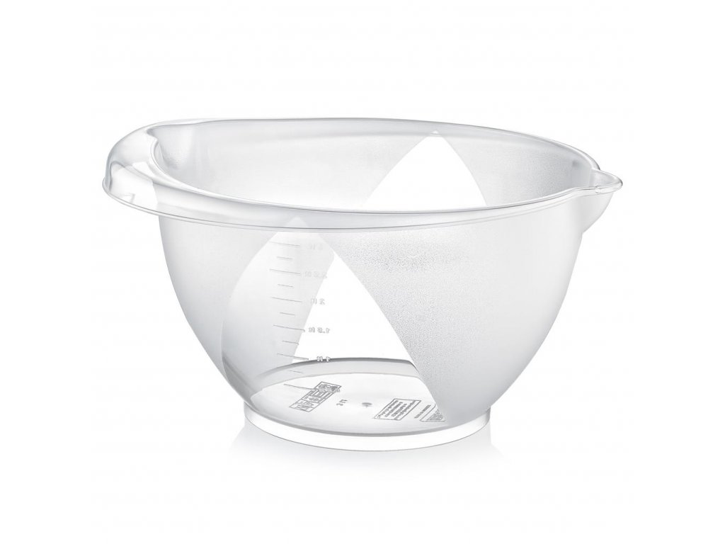 Plastová misa na šľahanie s výlevkou a úchytkou Vám poslúži pri šľahaní krémov, šľahačky či snehu z vaječných bielkov. Dá sa prípadne využiť i na uskladnenie zeleniny či ovocia či prípravu šalátov. Na stene misy je praktická odmerka, ktorá vám zjednoduší prácu pri príprave liateho cesta na koláče, ktoré v nej môžete priamo zamiešať. Materiál: plast. Rozmery: objem 3 l, 24x26x14 cm.Dodatočné parametre