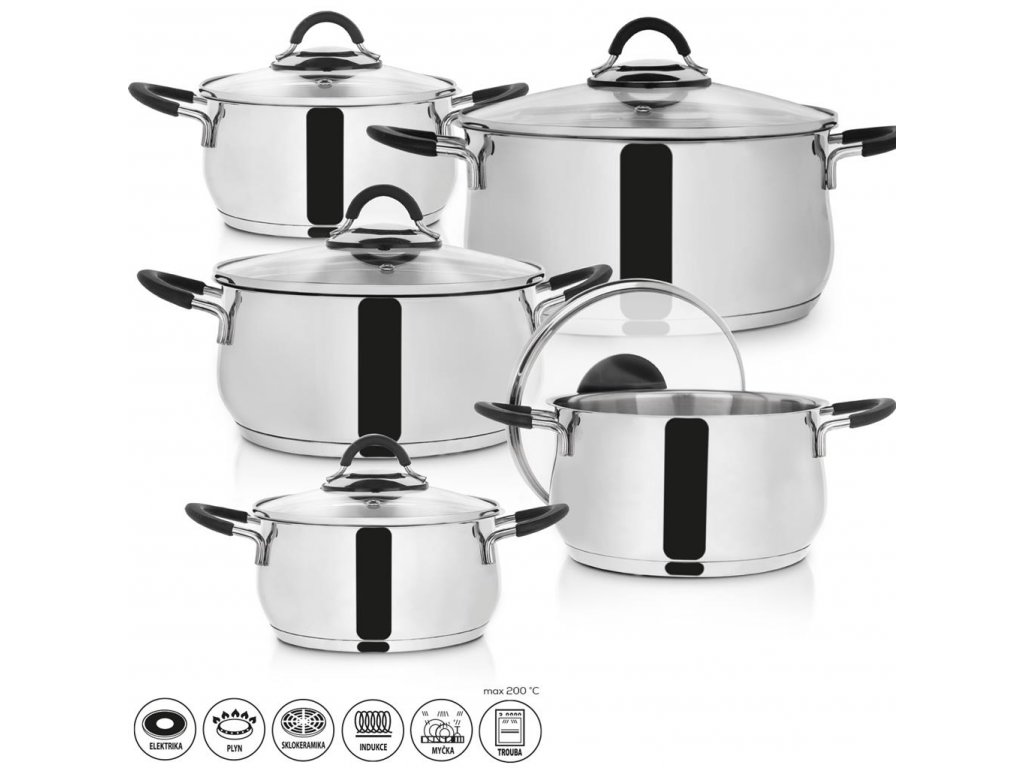 Sada hrncov DALIE je vyrobená z kvalitného materiálu. Praktická pomôcka pri príprave jedál overená desaťročiami. Vhodná na všetky typy spotrebičov vrátane indukcie. Hrnce bez pokrievok sú vhodné aj do elektrickej rúry vyhriatej na maximálne na 200 °C. Sú nenáročné na údržbu, vhodné aj do umývačky riadu. Materiál: nerez. Rozmery: priemer 16/18/20/22/24 cm, výška 9/10/10,5/12/12 cm, objem: 1,8/2,6/3,7/4/5,3 l.Dodatočné parametre