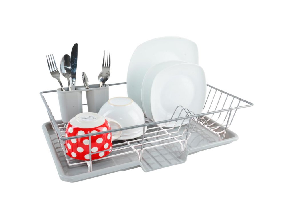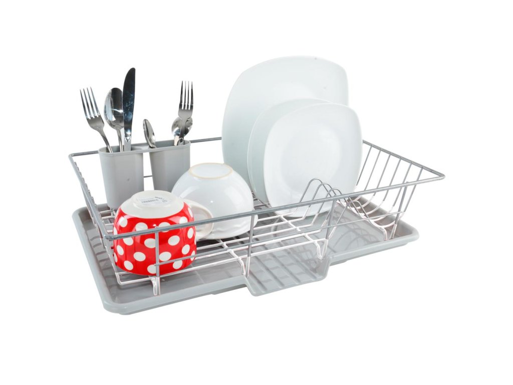 Drôtený odkvapkávač na riad s plastovým podnosom
