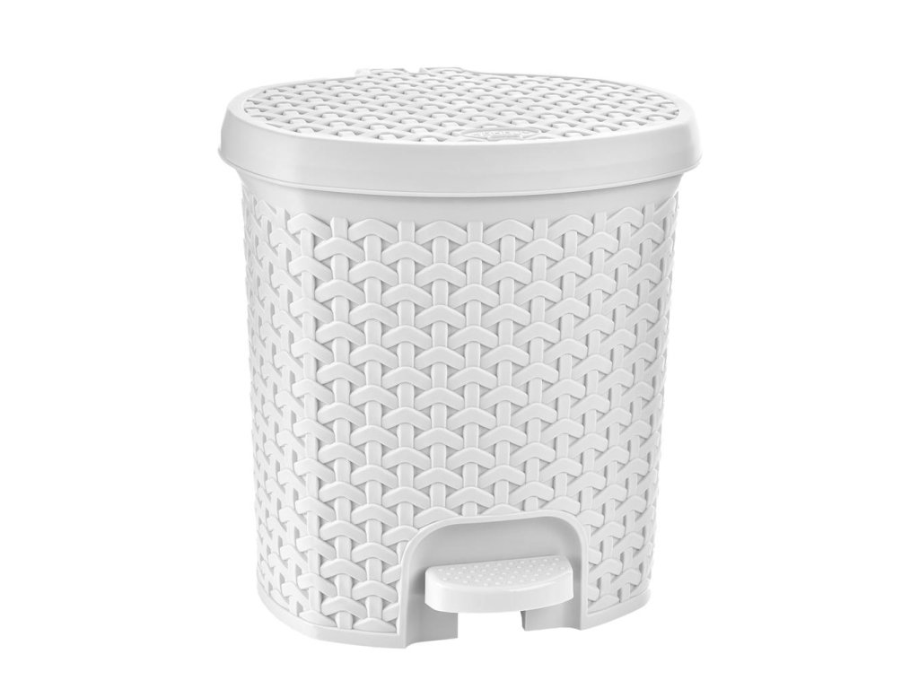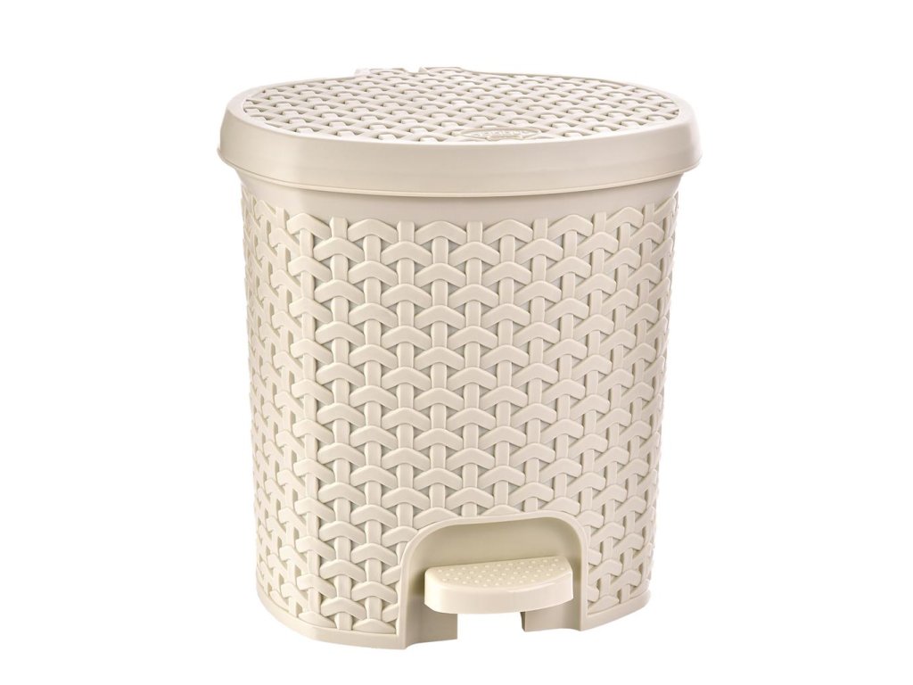 Plastový kôš na odpadky, na spodnej časti má umiestnený pedál na otváranie veka. Vo vnútri je vyberateľná plastová nádoba na odpadky. Je vyrobený z plastu v imitácii ratanu, vo viacerých farebných prevedeniach, je to assort farieb. Kôš vám pošleme podľa dostupnosti farby na sklade. Objem: 21 l.