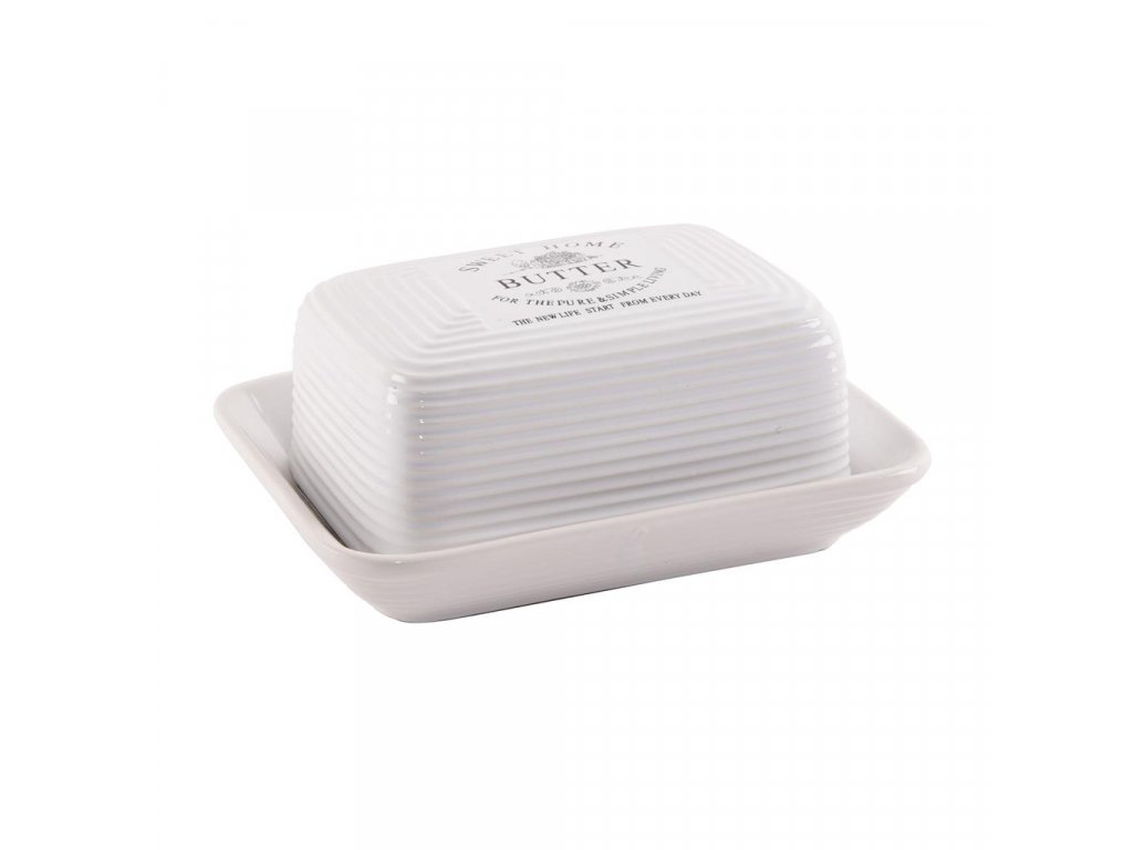 Ak milujete jemnú bielu klasiku, v tom prípade je tento kúsok keramickej dózy na maslo s dekorom SWEET HOME, tým pravým pre vašu kuchyňu. Ľahko ho zladíte so zvyškom riadu a vďaka svojej nadčasovosti, vám bude robiť vernú spoločnosť po dlhé roky. Materiál: keramika. Rozmery: 17,5x13,5x7 cm.Dodatočné parametre