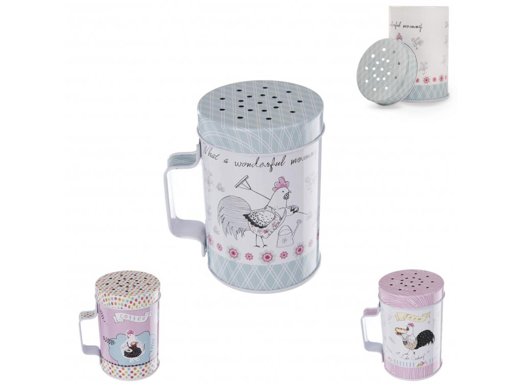 Pri pečení múčnikov využijete plechovú dózu - cukorničku. S uchom s jemným estetickým vzorom. Materiál plech. Rôzne farebné motívy. Rozmery: piemer 5,5 cm, výška 8 cm.Dodatočné parametre