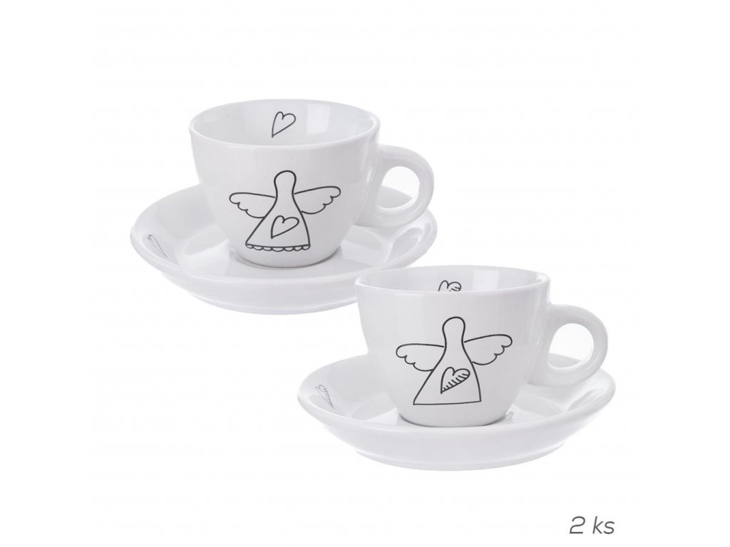 Hrnček keramický s podšálkou ANGEL, 0,09 l, 2 ks