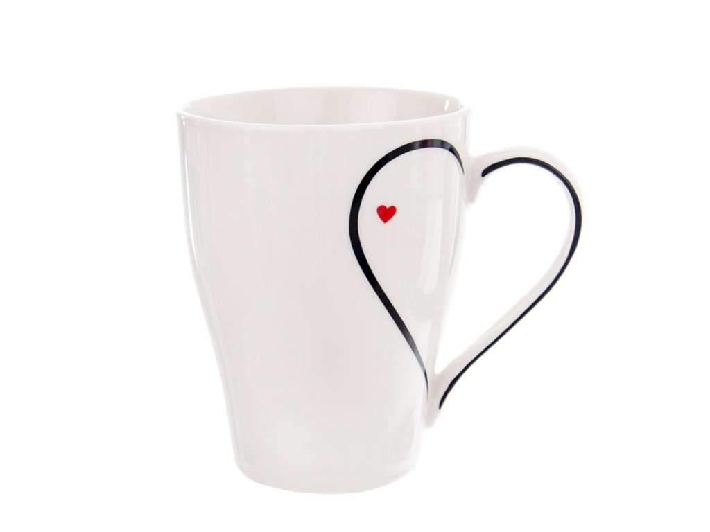Hrnček porcelánový s uchom a dekorom DUO LOVE. Vždy poruke, pripravený na rôzne druhy nápojov. Praktický dizajn a ušľachtilý materiál Vám zabezpečí pôžitok z nápoja či už pri práci, alebo oddychu. Je vhodný do umývačky riadu. Rozmery: priemer 8 cm, výška 11 cm, objem 0,38 l.Dodatočné parametre