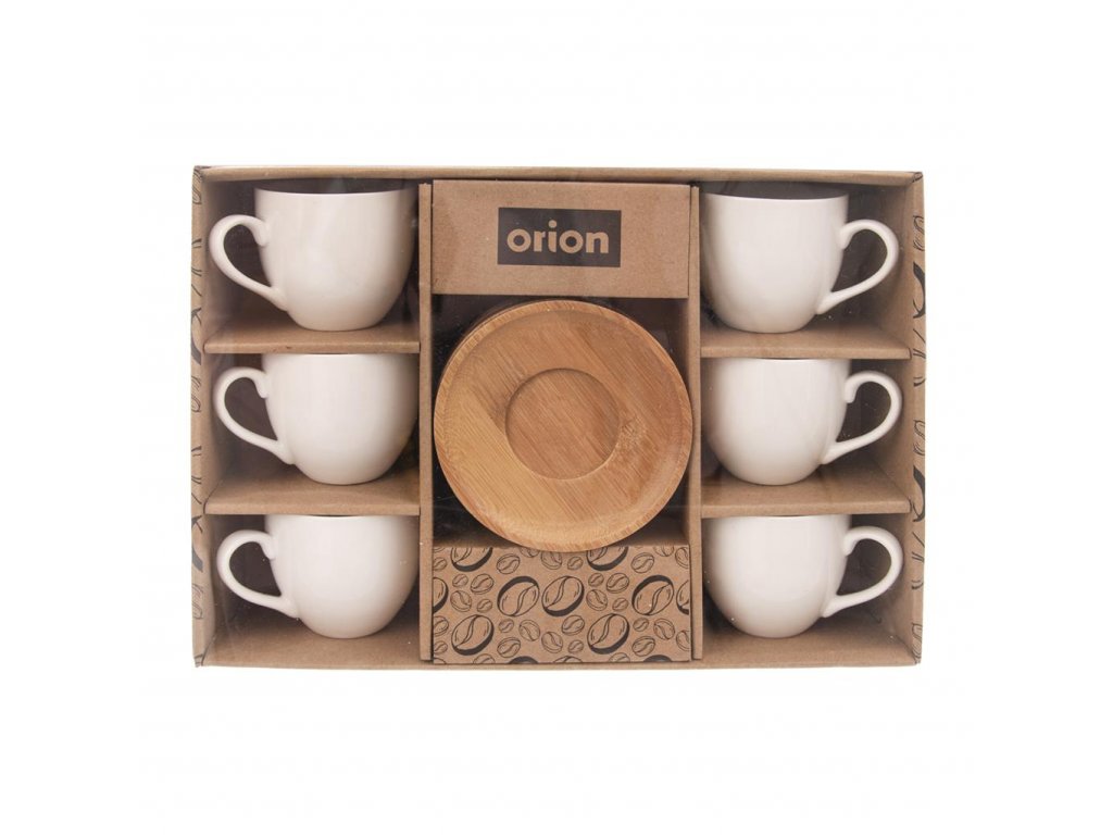 Hrnček porcelánový s bambusovou podšálkou, WHITELINE, 0,14 l, 6 ks