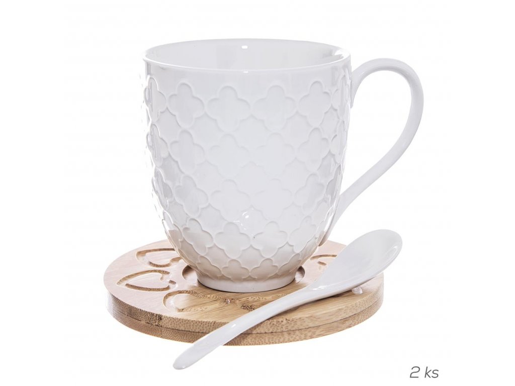 Hrnček porcelánový s bambusovou podšálkou a lyžičkou, WHITELINE, 0,37 l, 2 ks