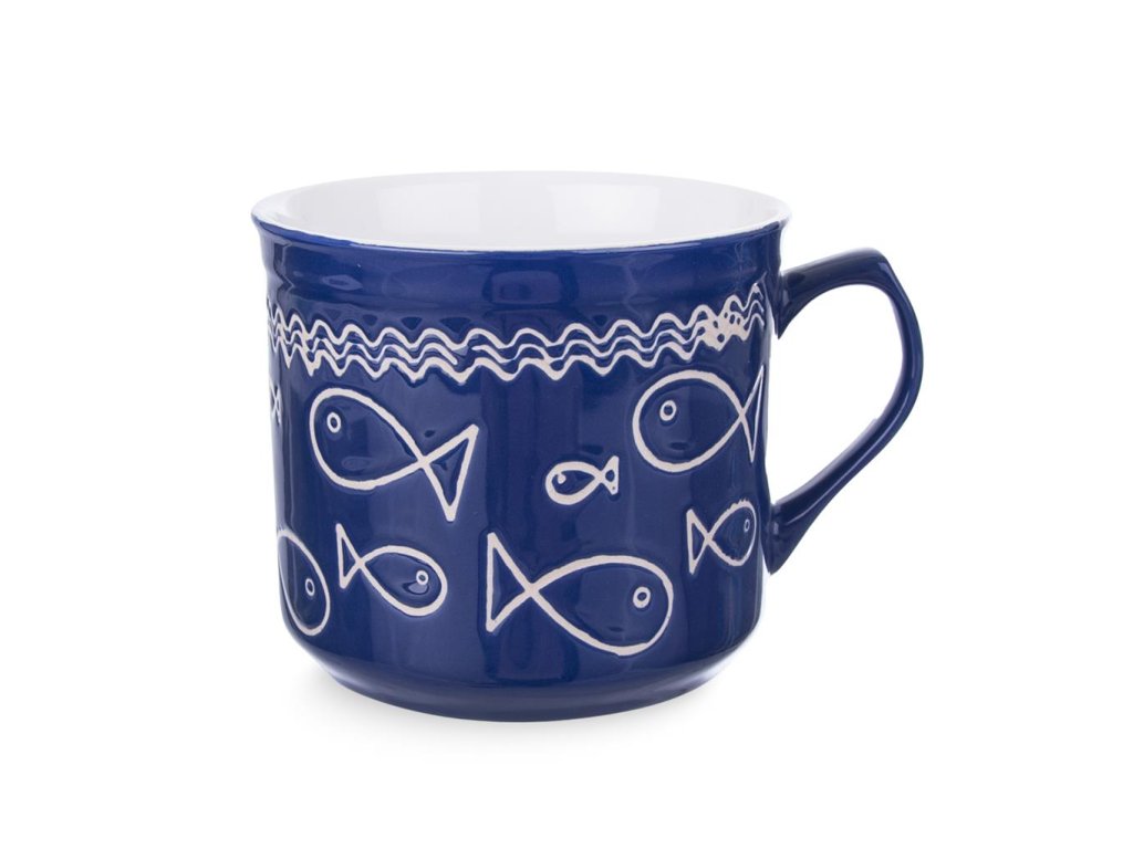 Veľký keramický hrnček s keramickým uchom na lepšie uchopenie s motívom RYBY je vhodný na servírovanie čaju, čokolády alebo iného teplého nápoja. Je zo série VARÁK vyrobený z keramiky. Objem: 0,5 lDodatočné parametre