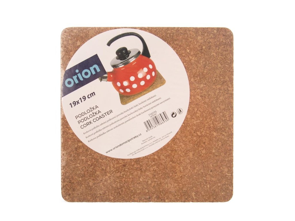 Korková podložka v tvare štvorca pod hrniec, praktický pomocník k vareniu, ktorý zbráni poškodeniu kuchynskej linky, stola od horúcich nádob. Je vhodná aj k prestieraniu.Je príjemná na dotyk, nestratí svoj tvar, skvelé tepelno izolačné vlastnosti, ktoré zaistia udržanie teploty vášho taniera, prípadne odizoluje horúce nádoby pri ich odkladaní. Materiál: korok. Rozmery: 19x19x1 cm.Dodatočné parametre