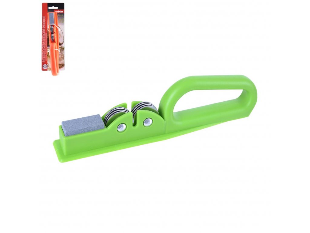 Brúska na nože s kovovými brúsnymi kotúčikmi aj brúsnym kameňom je veľmi praktická a vždy poruke ak potrebujete nabrúsiť kovový nôž. Nezabere veľa miesta a brúsenie Vám nezaberie veľa času. Na kovových kotúčoch prebrúsite ostrie noža a brúsnym kameňom zjemníte nabrúsené miesto. Praktický pomocník do každej domácnosti. Materiál: kov, plast, kameň. Rozmery: 20x3x4,5 cm.Dodatočné parametre