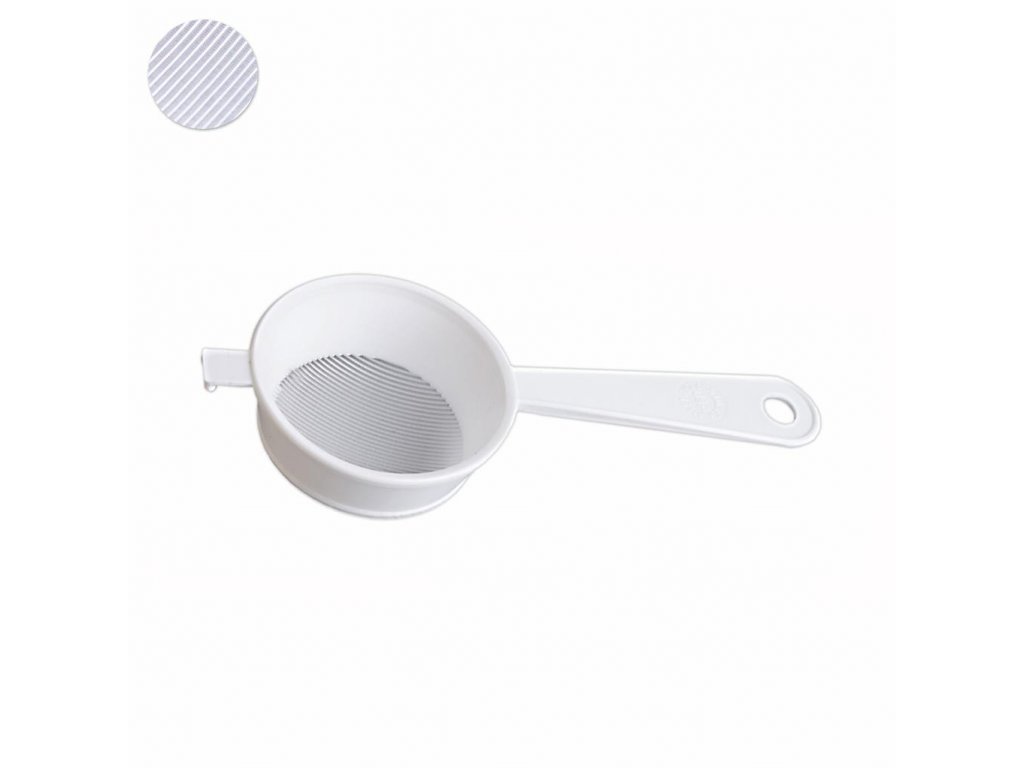 Plastové sitko s plastovým držadlom a zarážkou na lepšie umiestnenie na nádobe. Môžete ho použiť na precedenie čaju alebo inej tekutiny. Je vyrobené z plastu, na držadle má očko na zavesenie. Je vyrobené v bielej farbe. Priemer: 9 cmDodatočné parametre