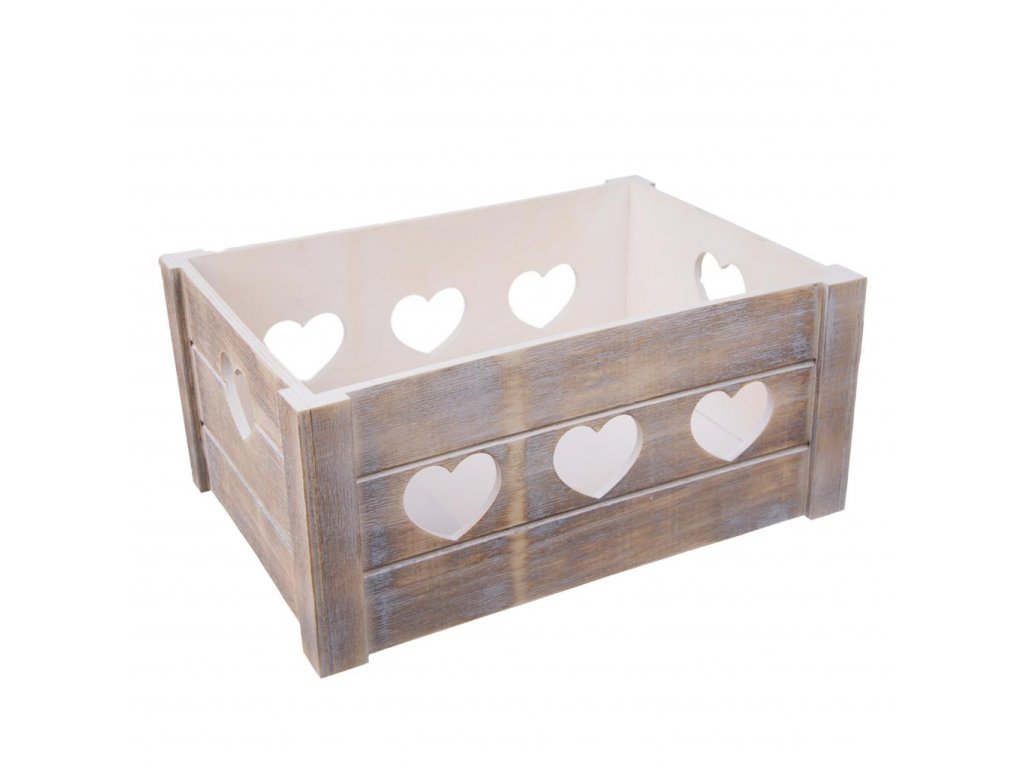 Bednička drevená s dekoráciou, SRDCE, 36x26x16 cm