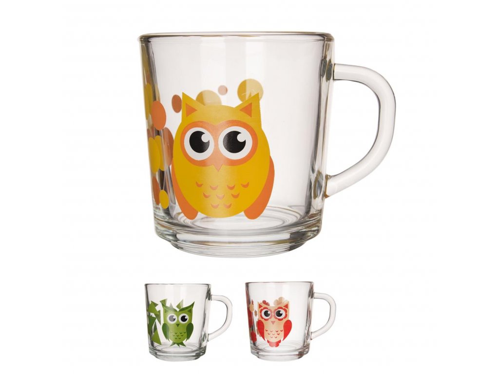 Sklenený hrnček s krásnym dekorom sovičiek vás zaručene nadchne, môže byť originálnym darčekom pre deti aj dospelých. Farby dodávané podľa skladových zásob. Rozmery: 0,29 l, 8x8,5 cm.
