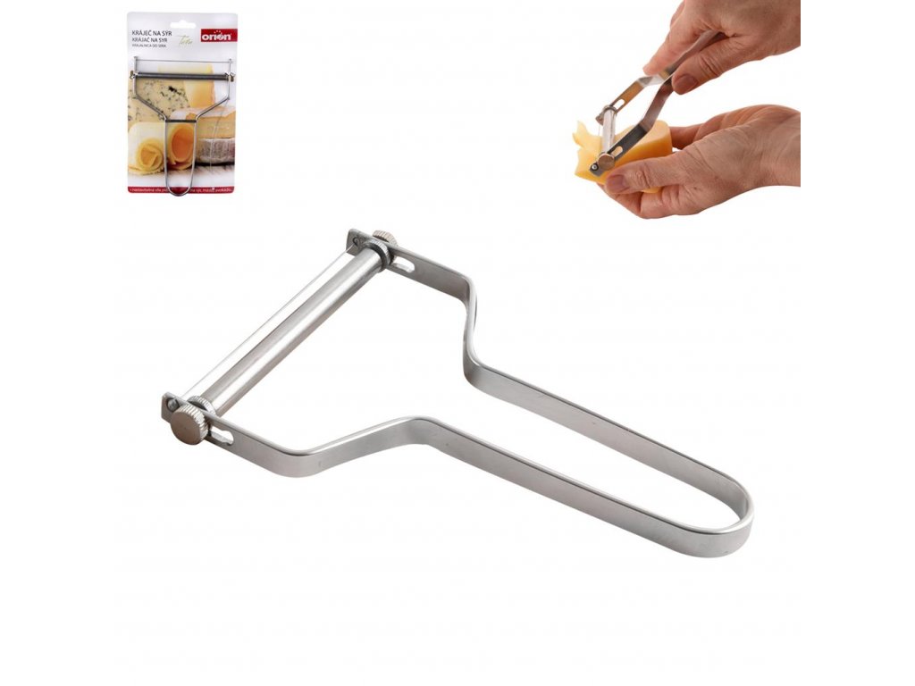 Milovníci syrov sa nezaobídu bez krájača na syr určeného na plátkovanie stredne tvrdých druhov syrov. Hrúbku plátkov jednoducho nastavíte posunutím zarážky - valčeka. Vďaka šírke krájača ho môžete použiť i na krájanie plátkov stuhnutého masla či porcovanie plátov avokáda. Súčasťou je náhradná struna na krájanie. Materiál: nerez. Rozmery: šírka 12 cm, dĺžka 17 cm.Dodatočné parametre