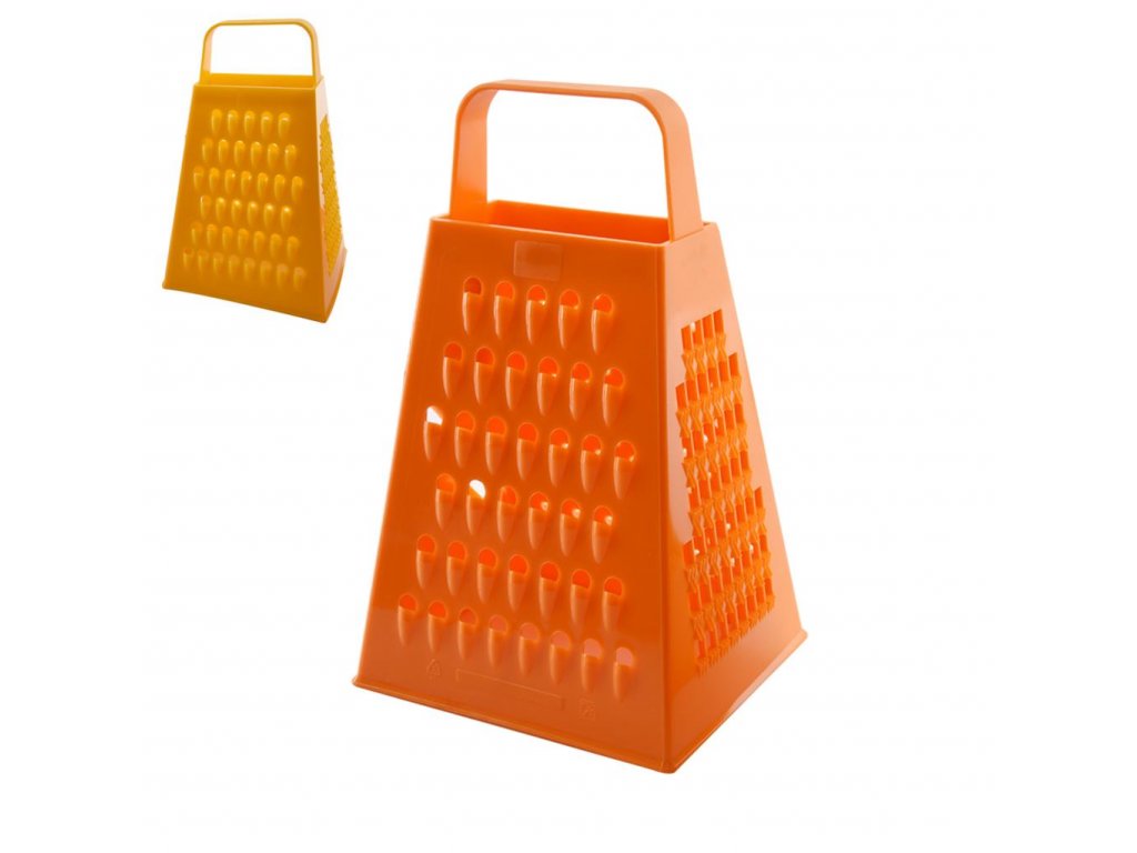 Nepostrádateľné štvorhranné strúhadlo do každej domácnosti. Rôzne plochy na strúhanie docielia rôznu veľkosť a hrúbku. Ľahko na nich nastrúhate na rôzne spôsoby syr, zeleninu i zemiaky. S reznou plochou na plátky - napríklad na uhorku či tekvicu. Materiál: plast. Rôzne farby. Rozmery: 13x10,5x20 cm.Dodatočné parametre