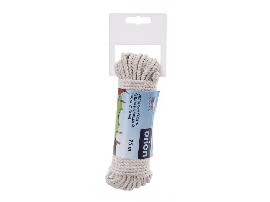 Šnúra na vešanie bielizne je vyrobená z bavlny. Je veľmi pevná a ľahko sa udržiava. Šnúra sa dá využiť v interiéri aj v exteriéri. Praktická pomôcka do každej domácnosti. Materiál: bavlna. Rozmery: dĺžka 15 m.Dodatočné parametre