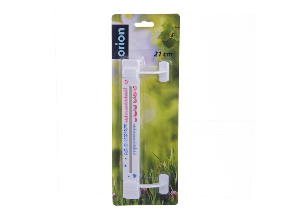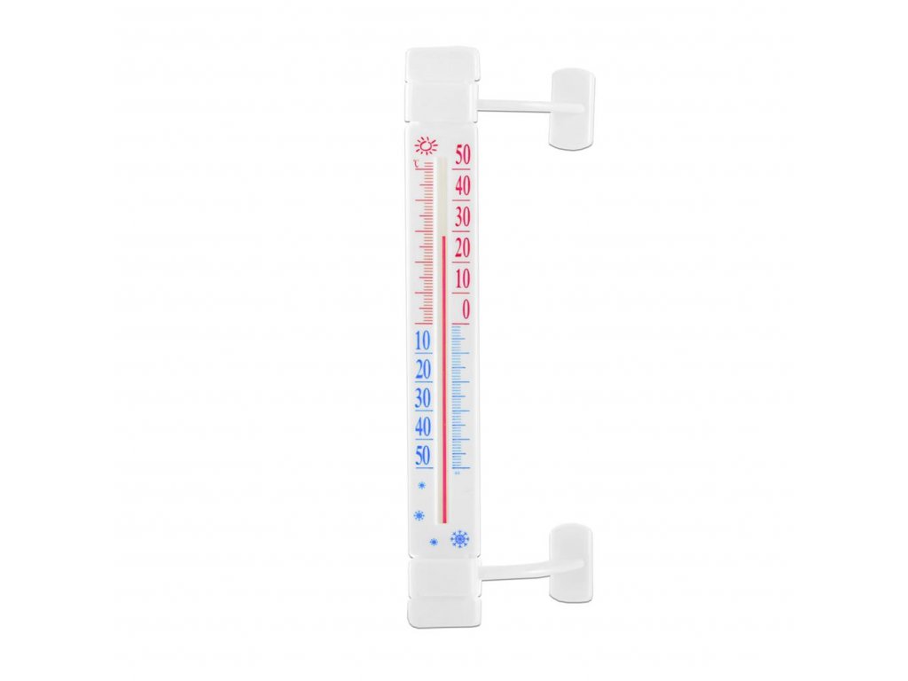 Teplomer univerzálny, ktorý vás spoľahlivo informuje o teplote v exteriéri či v interiéri. Veľké číslice aj pre slabší zrak. Červená a modrá farebná škála pre rozlíšenie plusových a mínusových hodnôt. pripevňuje sa pomocou lepiacej pásky (napr. na plastový rám okna), čo vám ušetrí prácne vŕtanie do steny. Smer úchytiek s lepiacou plochou sa dá nastaviť. Stupnica od - 50 °C do 50 °C. Materiál: plast. Rozmery: dĺžka 21 cm, šírka 2,5 cm.