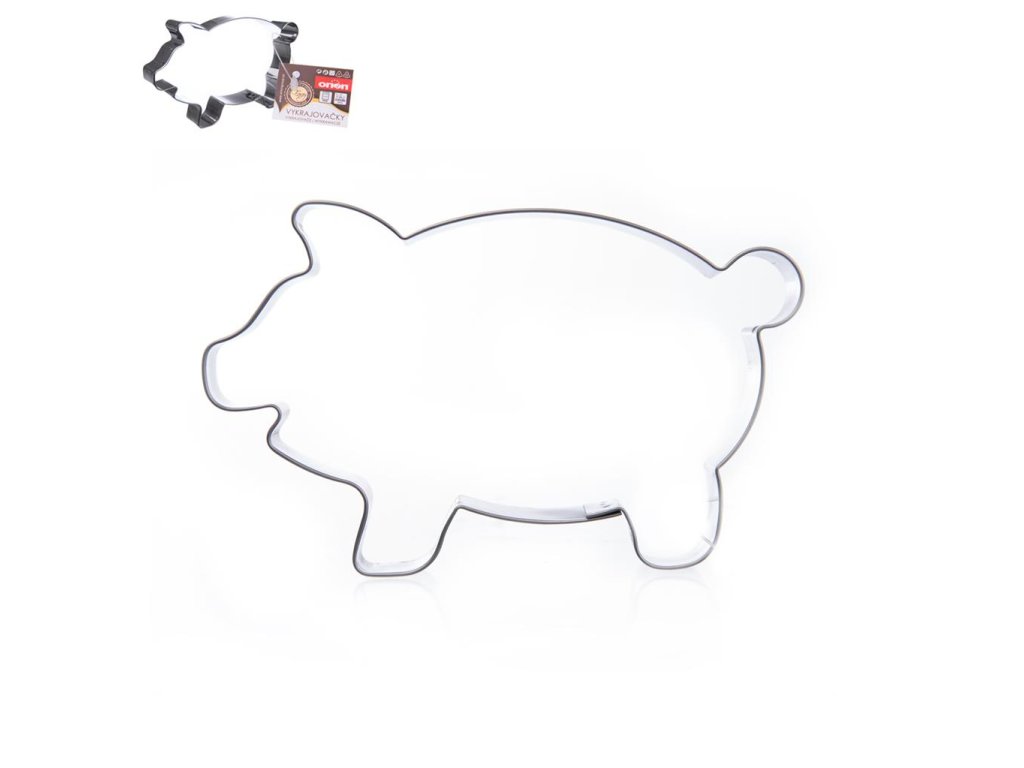 Nerezová vykrajovačka v tvare prasiatka, vhodná na vykrajovanie perníka. Prasiatka môžete vykrojiť tiež z fondánovej či marcipánovej hmoty, na ozdobenie torty. Formičku ľahko umyjete pod tečúcou vodou. Materiál: nerez. Rozmery: 12x8x1,5 cm.