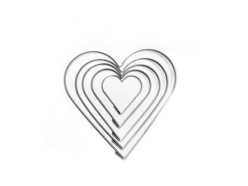 Nerezové vykrajovačky v tvare srdca, vhodné na vykrajovanie sladkých medovníkov. Jej milému tvaru sa potešia dospelí ale najmä deti. Súprava obsahuje 5 ks srdiečok rôznych dĺžok od 2-5,5 cm. Materiál: nerez.
