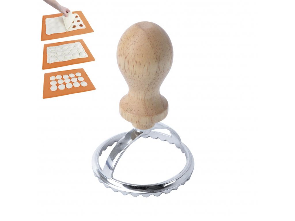 Vykrajovač na šišky s priemerom 6,5 cm s ktorým pohodlne vykrojíte kolieska z cesta na potrebnú veľkosť. Výhodou je rukoväť, vďaka ktorej zostanú vaše ruky čisté. Rozmery: priemer 6,5 cm, výška 10 cm. Vykrojené kolieska majú priemer 5,5 cm. Materiál: kov, drevo.Dodatočné parametre