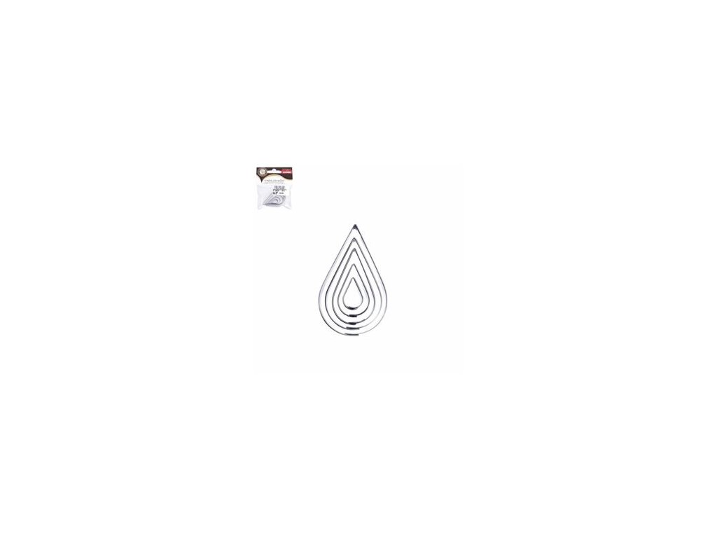 Nerezové vykrajovačky v tvare kvapky, ktoré vám pomôžu pri pečení sladkých alebo slaných dobrôt a taktiež pri tvorbe z marcipánu. Sada obsahuje 5 ks rôznych veľkostí 1,5 cm - 5,5 cm. Sú vyrobené z nerezovej ocele so zosinenou hornou stranou a ostrou dolnou stranou formičky.