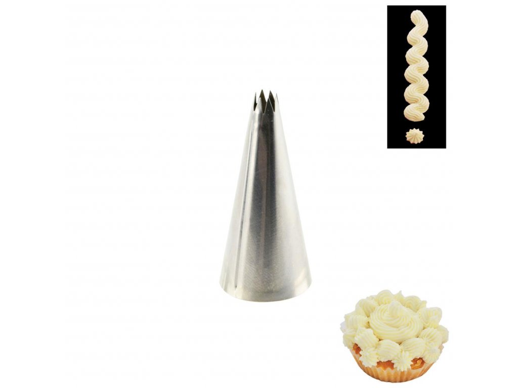 Okúzľujúce jemné vlnky či nežné hviezdičky zo slaného či sladkého krému dokáže jednoducho vytvoriť špička na zdobenie s 8 zúbkami. Vhodná do umývačky na riad, stačí i opláchnuť pod tečúcou vodou. Neodmysliteľná pomôcka na prípravu sladkých dobrôt do každej kuchyne či cukrárskej dielne. Materiál: nerez. Rozmery: priemer 0,8 cm, dĺžka 5,5 cm.