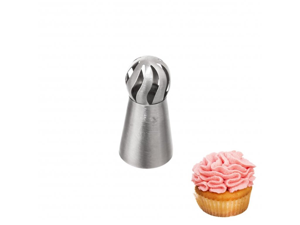 Vaše dezerty a múčniky budú vyzerať ako od profesionálov - kvalitná nerezová trezírovacia špička na nich vyčarí krásne vlnky a iné oblé tvary. Tip: špičku môžete použiť nielen na sladké, ale i na slané plnky a nátierky, napríklad pri zdobení studených mís a jednohubiek. Po použití vypláchnite prúdom tečúcej vody. Materiál: nerez. Rozmery: priemer 2,5 cm, výška 6 cm.Dodatočné parametre