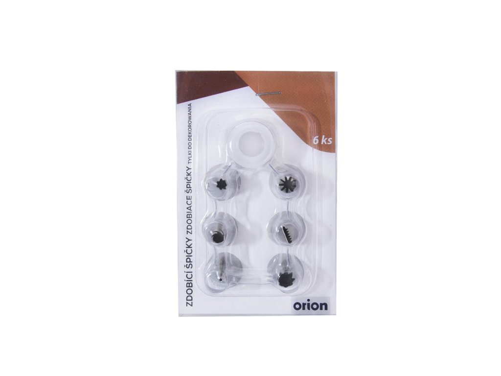 Špičky na zdobenie s rôznymi výrezmi vyčaria na múčnikoch, tortách a dezertoch nádherné vlnovky, kvety a iné tvary zo sladkého krému či šľahačky. Plastové okružie so závitom na upevnenie špičky zabraňuje jej vysunutiu aj pri väčšom tlaku hustejšieho krému. Tip: skúste použiť napríklad na šunkovú či chrenovú penu pri zdobení obložených chlebíčkov. Materiál: nerez, plast. Rozmery: priemer 1,5 cm, výška 3,5 cm.Dodatočné parametre